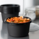 Karat PP Tamper Resistant Injection Molded, Black Food Container with a clear Lid are designed to keep your food fresh and secure. Made from durable plastic, these deli containers with lids are perfect for storing soup, sauces, and other food items. The containers come in various sizes including 34oz, 44oz, 52oz, and 60oz, making them versatile for all your storage needs. They are also microwaveable, offering you the convenience of reheating your food without transferring it to another dish.