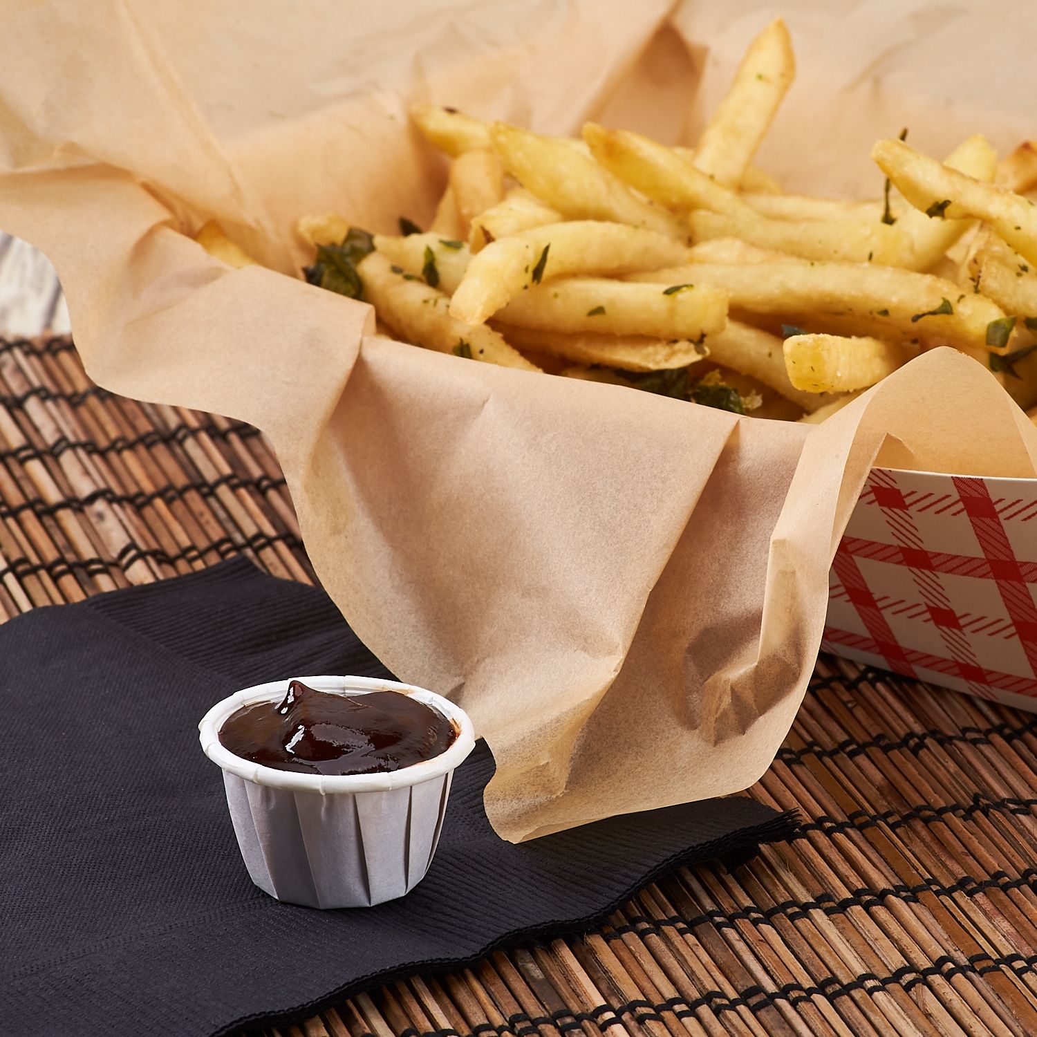 Karat 1/2oz paper portion cups are perfect for dispensing small portions of condiments and dressings or passing out samples to customer. While these souffle cups are typically used for portioning ketchup, they are sturdy enough to withstand frozen yogurt and the perfect size for dispensing medication.