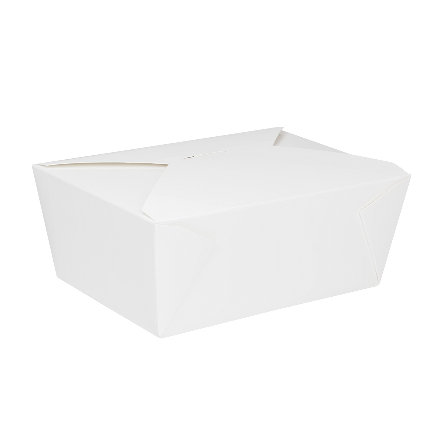 Karat Fold-To-Go Boxes' high-quality design will add sophistication to your take out service that your customers will love. The one-piece design requires no assembly and allows it to hold food, gravy and sauce. It could also be a great way to package appetizers, cookies, candy, or gifts. The Fold-To-Go take out container is made of heavy-duty paperboard with a poly lining, which makes it microwavable, stackable, cut resistant, leak-resistant, and grease resistant. Available in three popular sizes, this product will give your customers and your staff flexible storage and take-out options.
