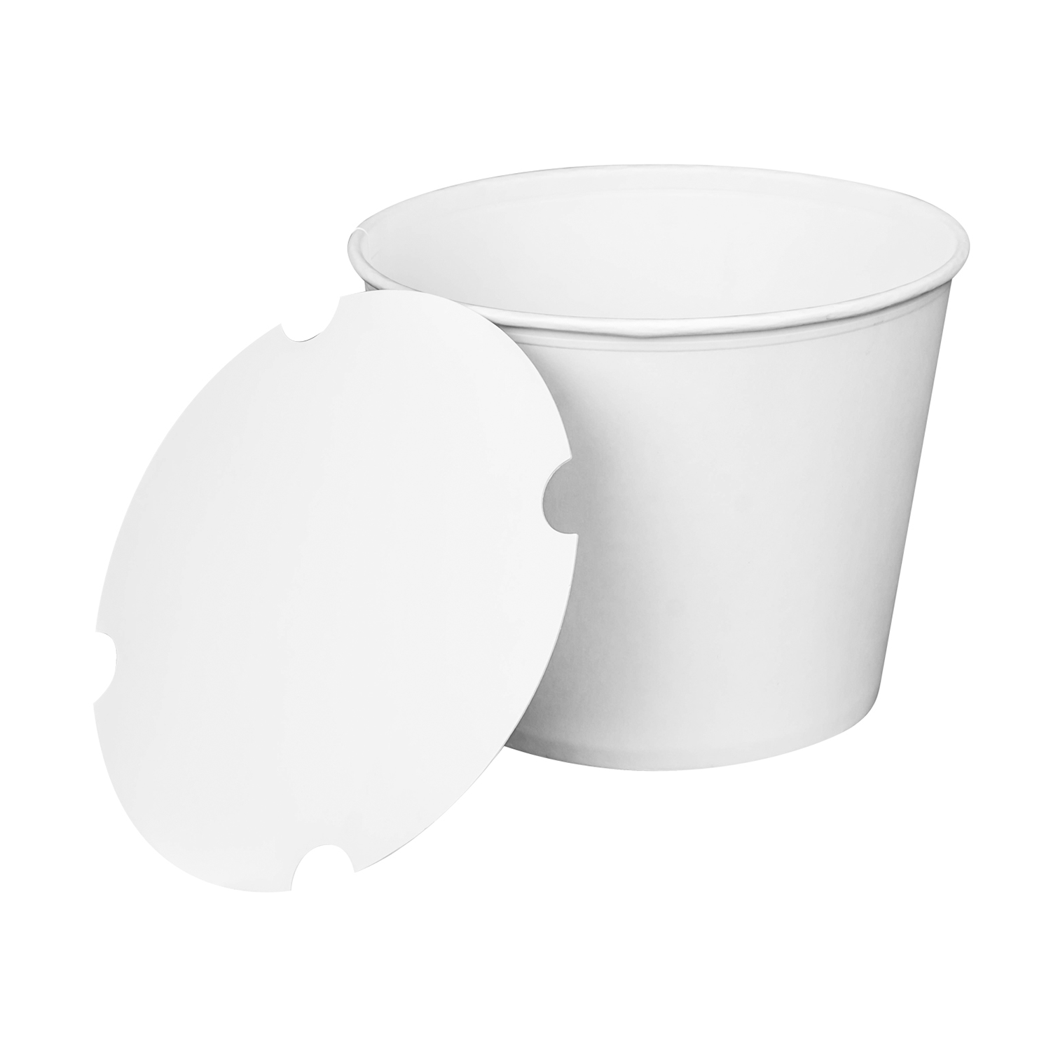 Karat 130oz Food Buckets are specifically designed for storing foods such as fried chicken, popcorn, and pastries for take out. Buckets come with matching flat paper lids that fit into a grove around the top of the bucket.