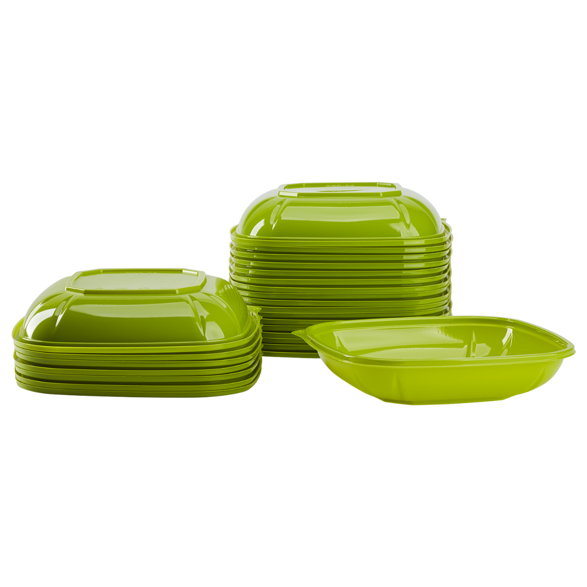 Karat® PET Square Bowl in the color green will help give your food a fresh and clean presentation! Each PET squared bowl can store a variety of foods like fruit, fresh salads, and many more! These bowls have a squared appearance and are crack-resistant. These PET square bowls have a temperature tolerance of -10~120°F (-23~49°C).