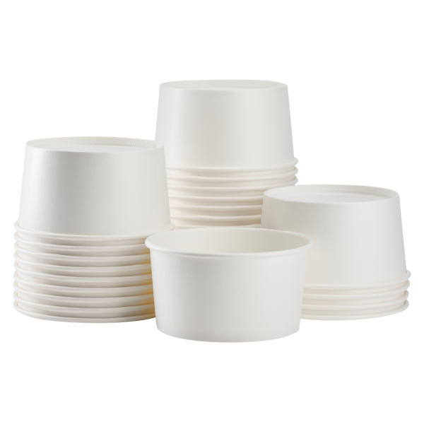 Karat Paper Food Containers are designed for use with hot or cold food and are great for ice cream, yogurt, gelato, noodles, and salad. All of our food containers feature a double poly lining for added resilience and to prevent leaking.