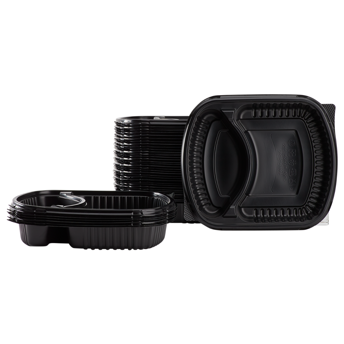 Karat® Microwaveable Take Out boxes are sturdy and made from high-quality PP material. These takeout boxes are ideal for an assortment of foods and has two compartments! Each take out box comes with a matching OPS lid and though each take out box is microwaveable; their matching OPS lid is not. With these take out boxes, you can provide your customers with a great take out experience!