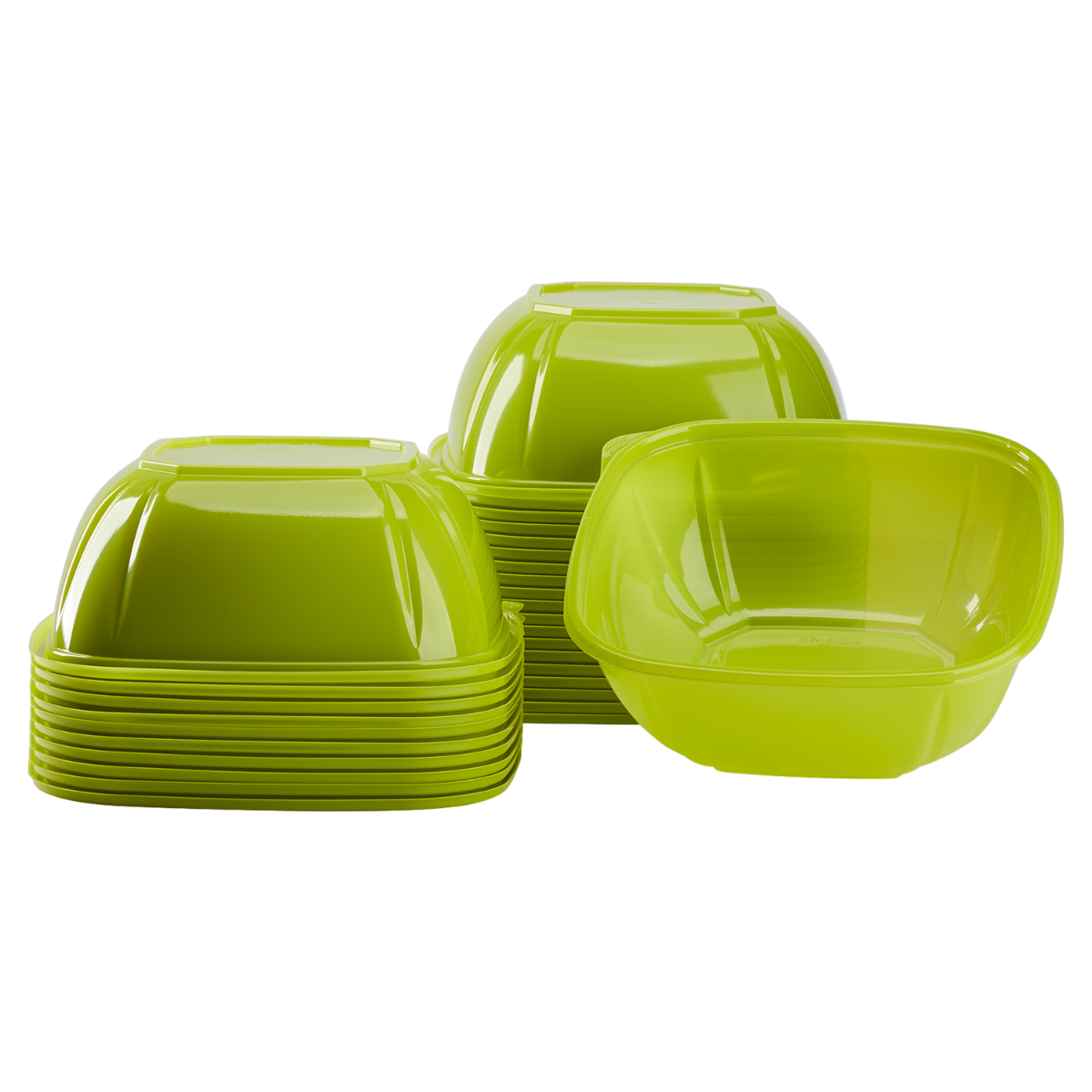 Karat® PET Square Bowl in the color green will help give your food a fresh and clean presentation! Each PET squared bowl can store a variety of foods like fruit, fresh salads, and many more! These bowls have a squared appearance and are crack-resistant. These PET square bowls have a temperature tolerance of -10~120°F (-23~49°C).