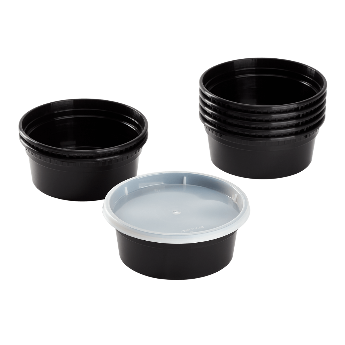 Classic deli containers are thin clear plastic meant for salads and sandwiches. For hefty foods like chowders or soups, the Karat 8 oz Injection Mold Deli Container is the best solution. Restaurant supplies that are durable, heat-resistant and microwaveable are important during the age of food deliveries. Check off all your boxes with this round deli container and lid!
