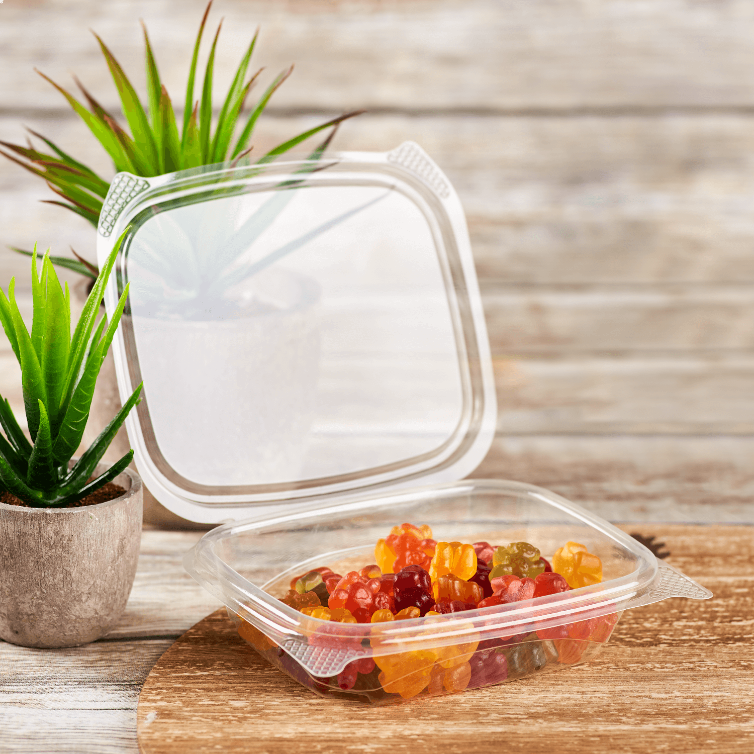 Karat Earth® PLA hinged containers are durable, stackable and most importantly, made from renewable resources! PLA hinged containers are an eco-friendly and secure way to serve items under 122°F to-go. Containers are available in different sizes and feature one compartment to ?t your needs.