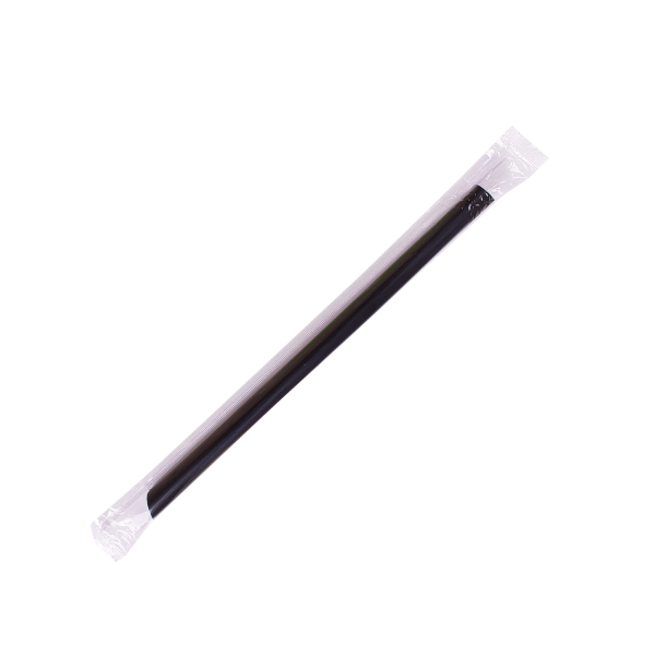 High-quality Karat Boba black color straws are 10mm wide and perfect for drinks that contain add-ons such as boba, pudding, jelly, or fruit bits. Each straw is individually poly-wrapped and diagonally cut at one end to puncture the sealing film.