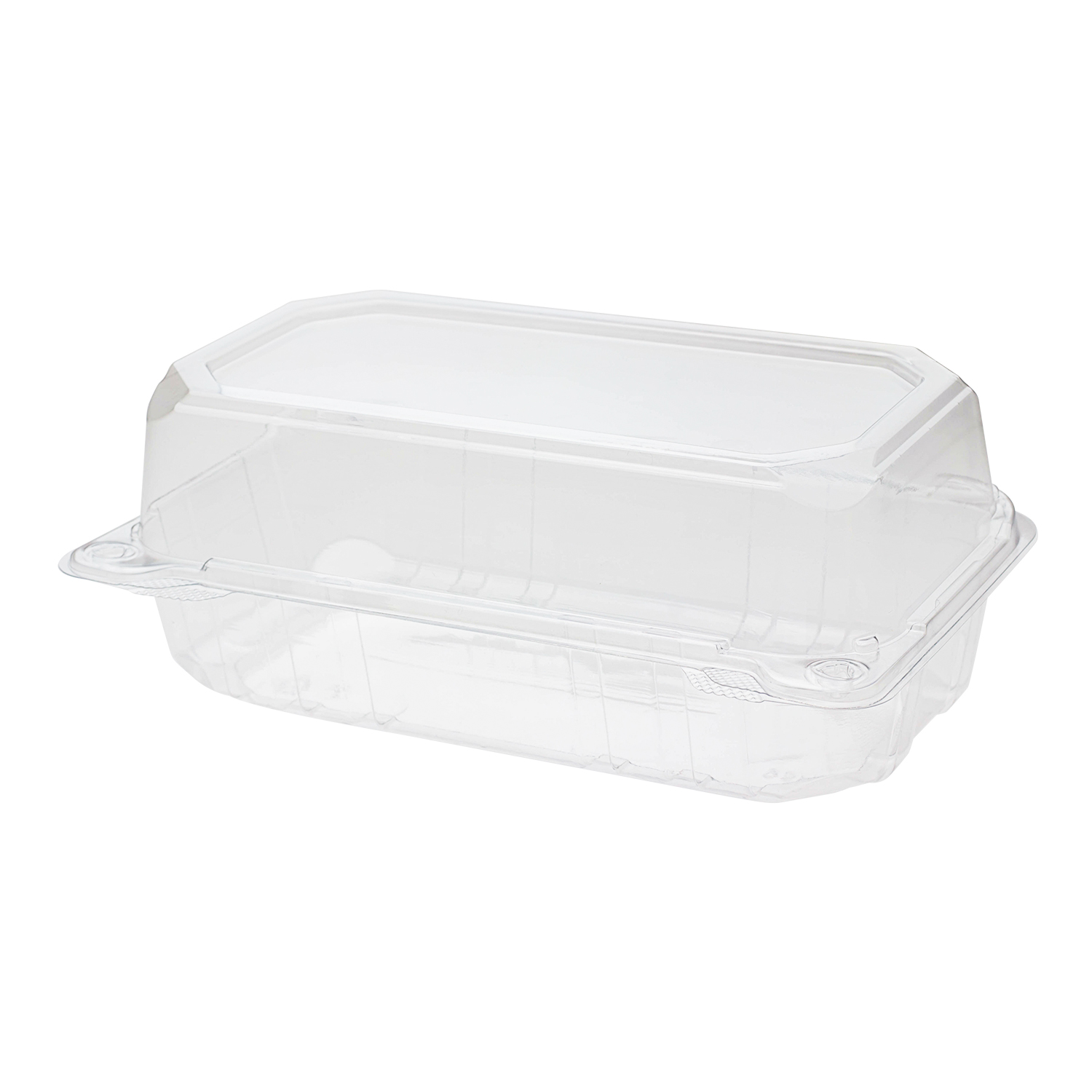 Karat plastic hinged containers are perfect for food to-go. These stackable and crack-resistant containers are made from crystal-clear recyclable PET plastic. Recommended for storing foods between -10° F and 120° F.
