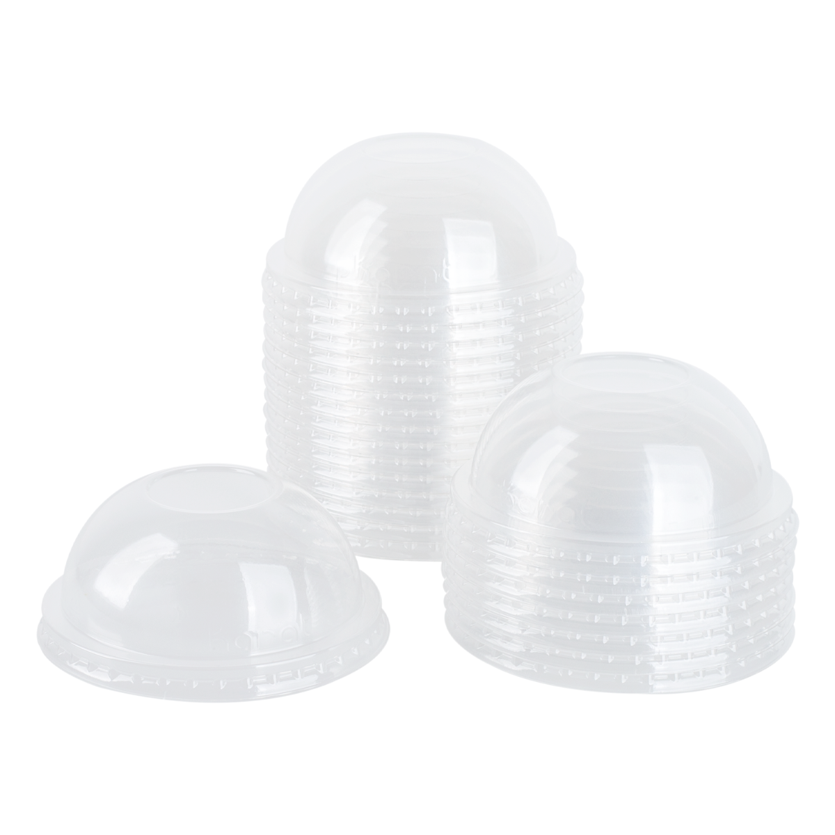 This Karat PET No-Hole Dome Lid is made for Karat 12-22 oz. cold cups. From colorful slushie to creamy milkshake, this transparent plastic dome lid is ideal to top off your cold or ice blended beverages. Great for boba milk tea shops, coffee shops, fast-food restaurants, food trucks, or any to-go establishment. Our lids are designed to fit all other name brand cups with a 90mm diameter.
