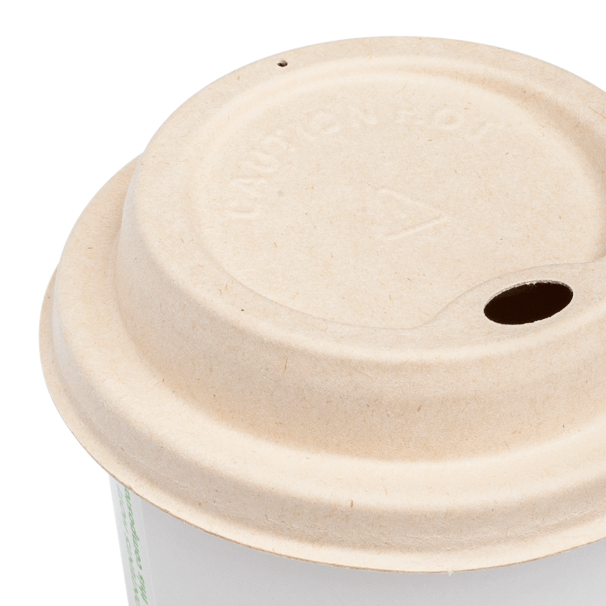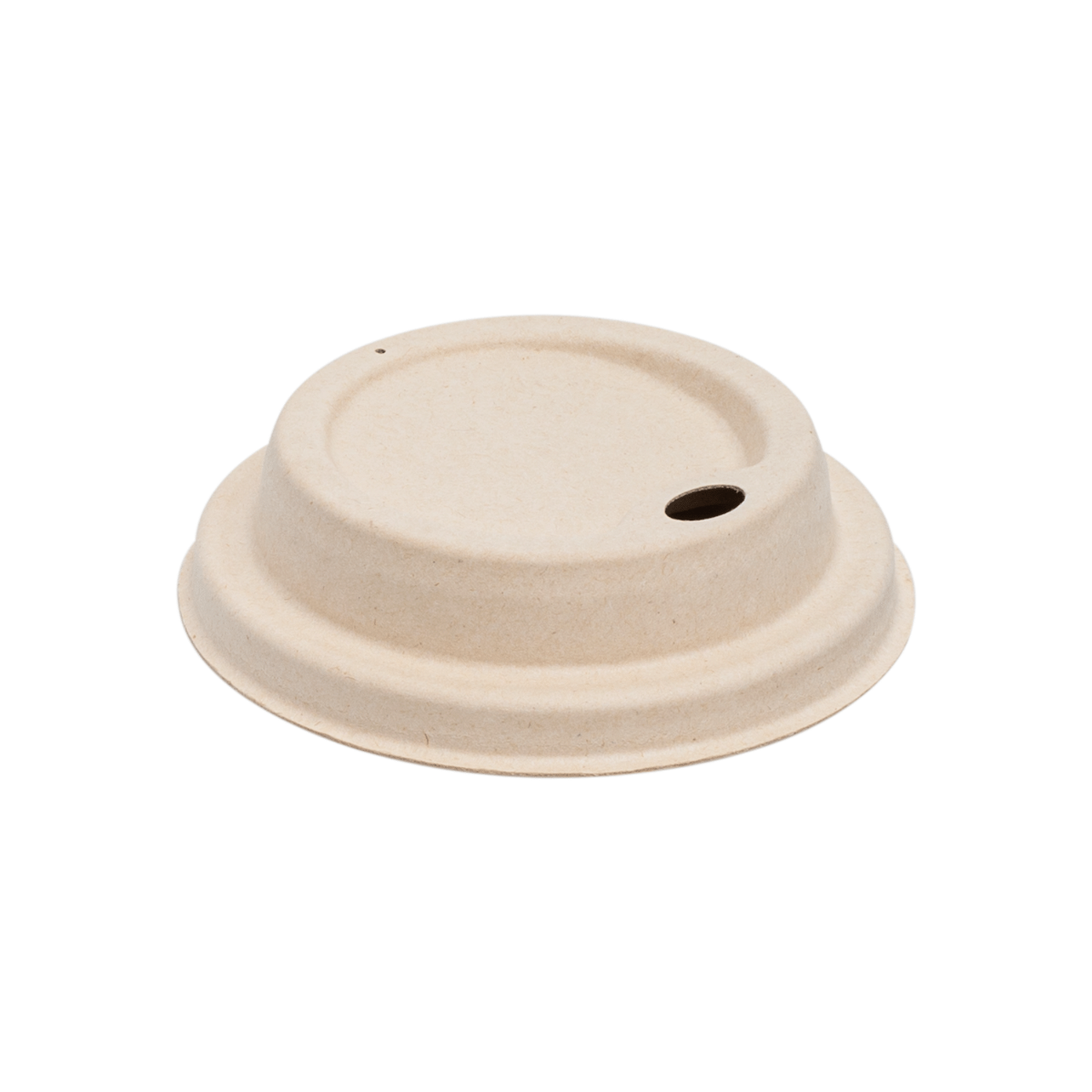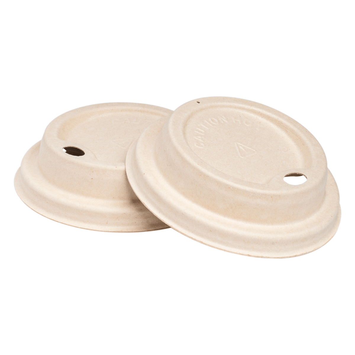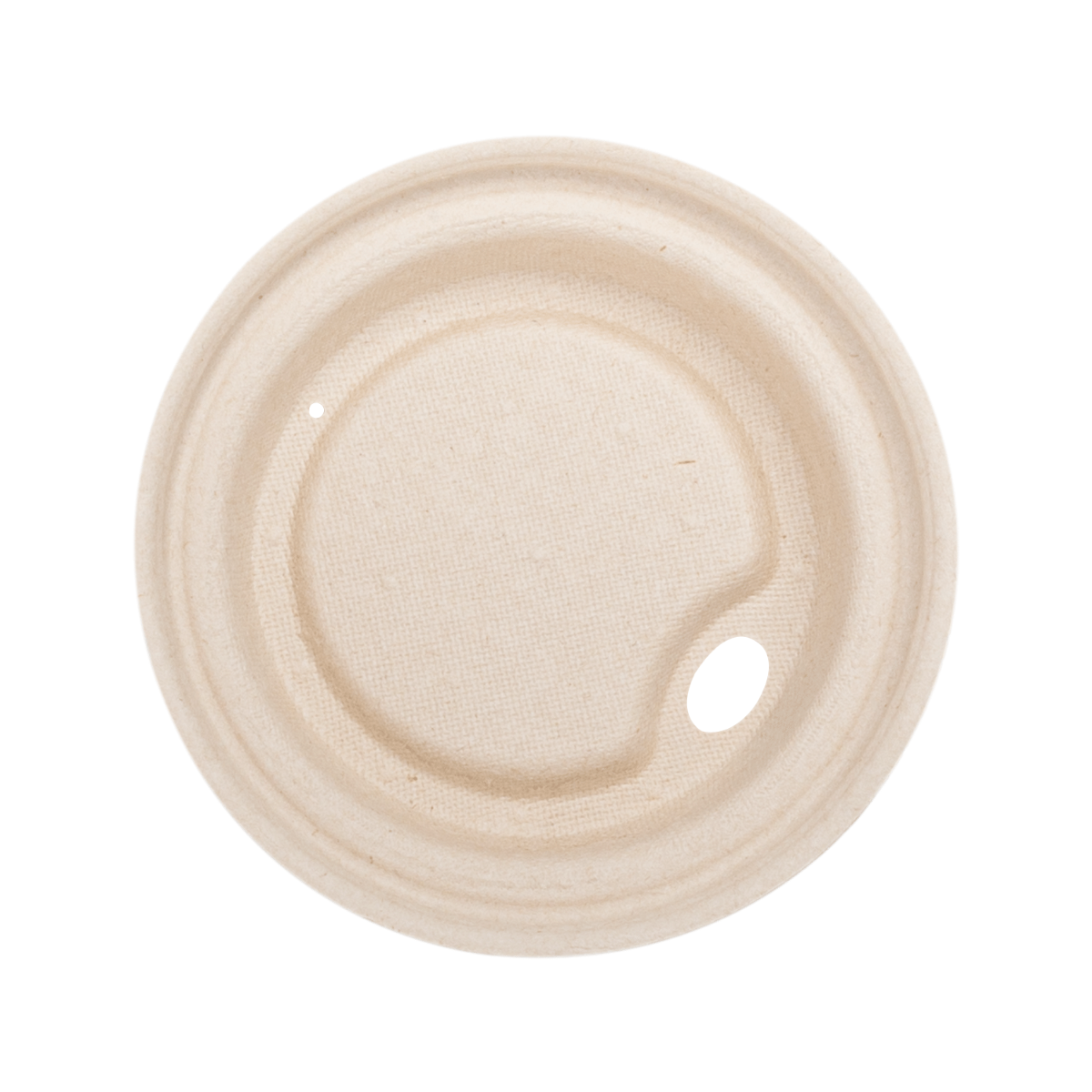 Karat Earth Eco-Friendly Bagasse Sipper Lids fit perfectly on 8 oz paper hot cups to provide a steady flow when drinking and a reduced impact on the environment.