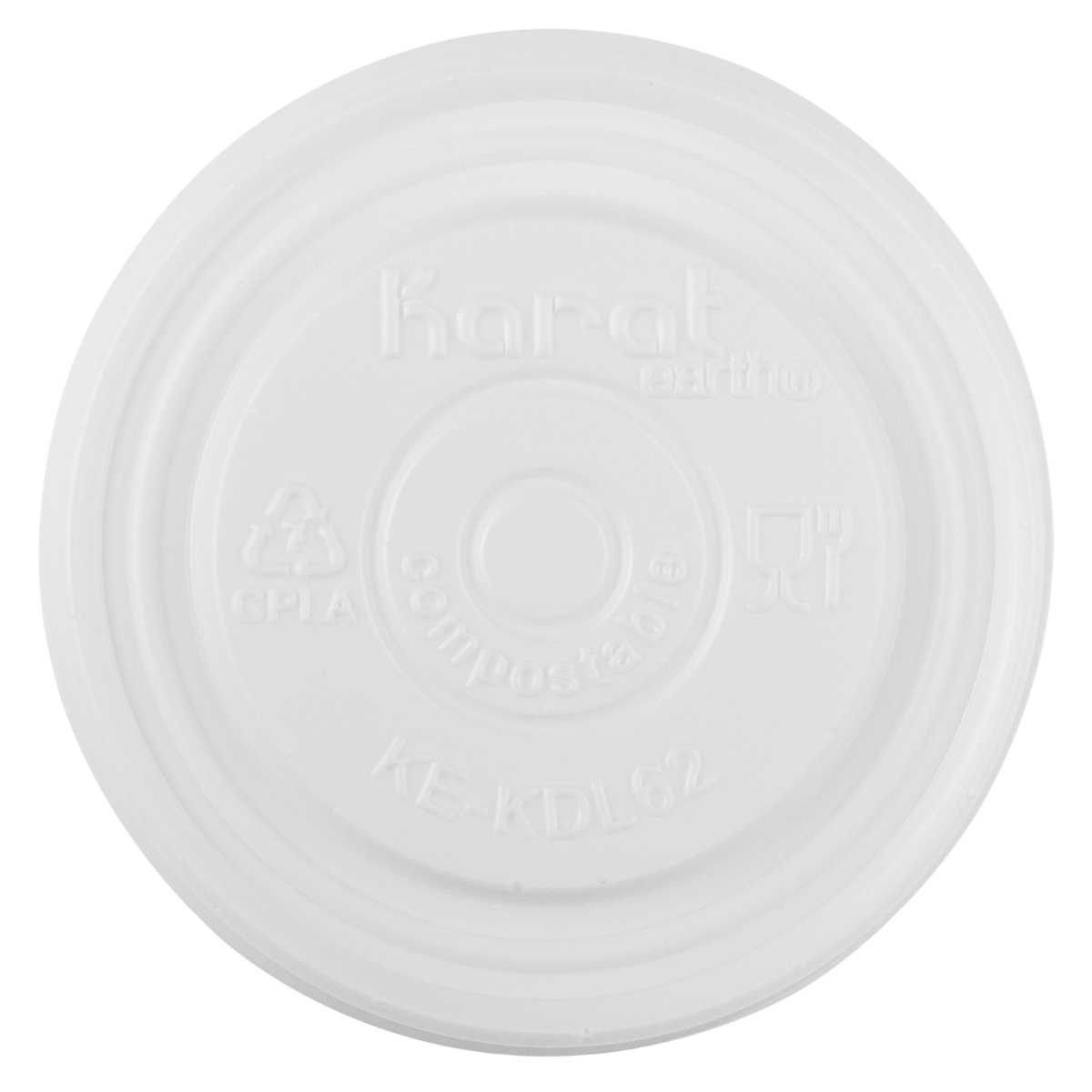 Complete your collection of eco-friendly restaurant supplies with the Karat Earth Compostable CPLA Flat Lid for 2oz portion cups. This lid creates a secure seal on the portion cup to prevent leaking during transport. The CPLA lid is made from renewable plant-based material and is strong enough to withstand hot food. When you're finished, simply toss it into a compost bin for commercial composting!