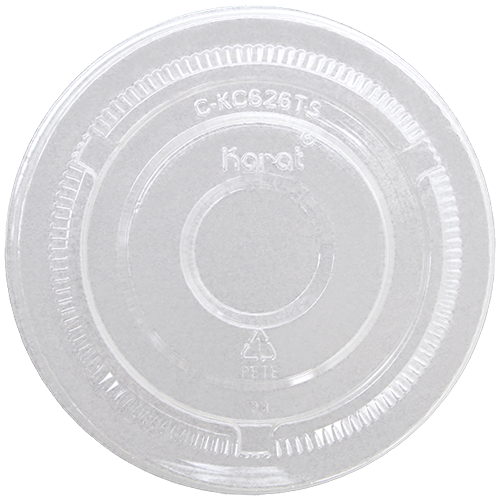 Karat 98mm PET flat lids are designed to fit Karat 12-24oz PET and PolyPro cold cups with 98mm rim diameters. These lids can also fit other name brands cups with a 98mm diameter. Lids are made of crystal clear PET plastic for high visibility of drinks or snacks. These solid lids do not come with a hole for a straw making them perfect for keeping parfaits, fruit, or other snacks fresh and portable.