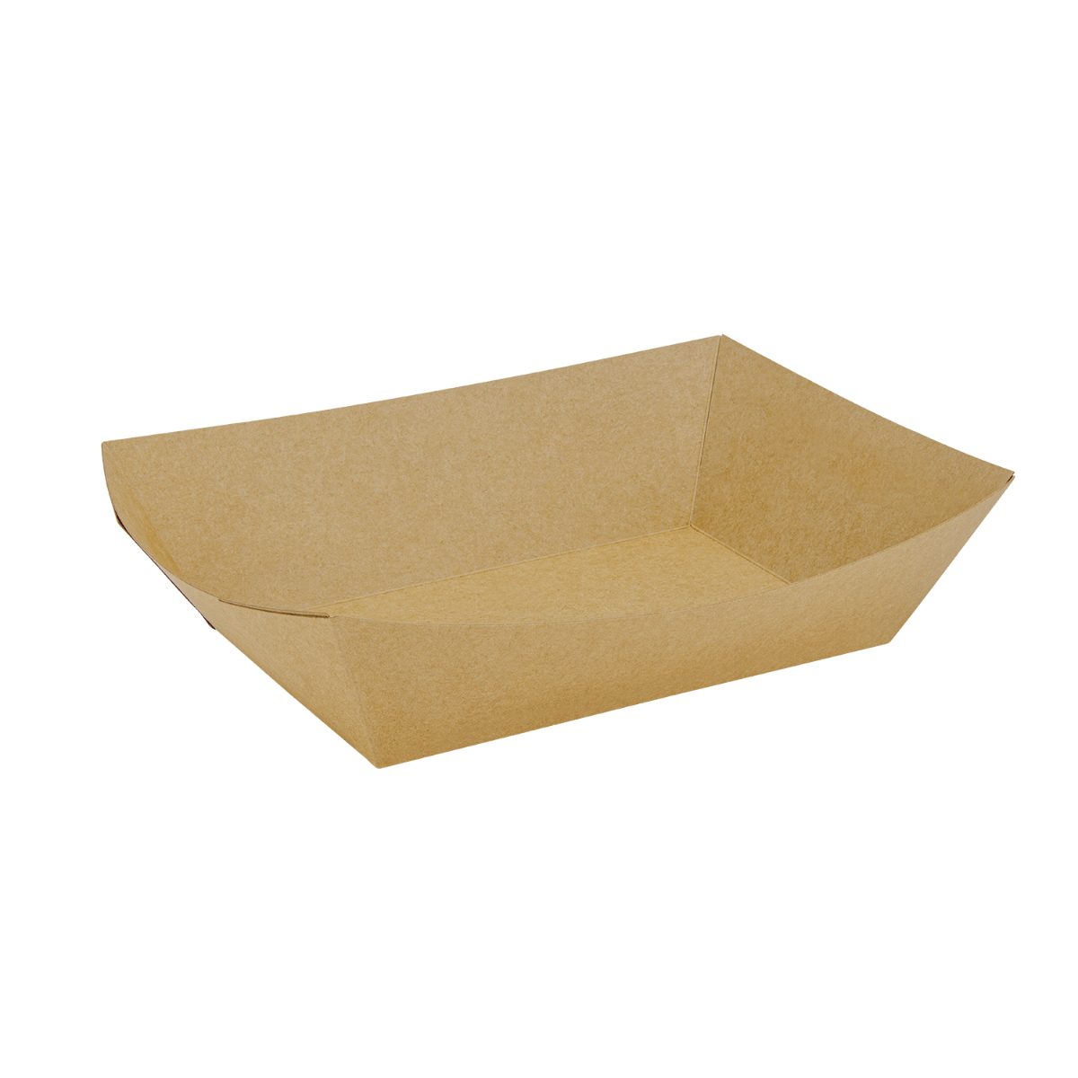 Karat Paper Food Trays are made for popular snacks, sides dishes, or finger foods. The sturdy construction is coated with food safe gloss that is leak resistant and acts as a grease barrier. The open top allows for sauces, condiments, and dips to be easily added to any food item. Custom print services are also possible for these paper trays so you can brand your business to all your customers!