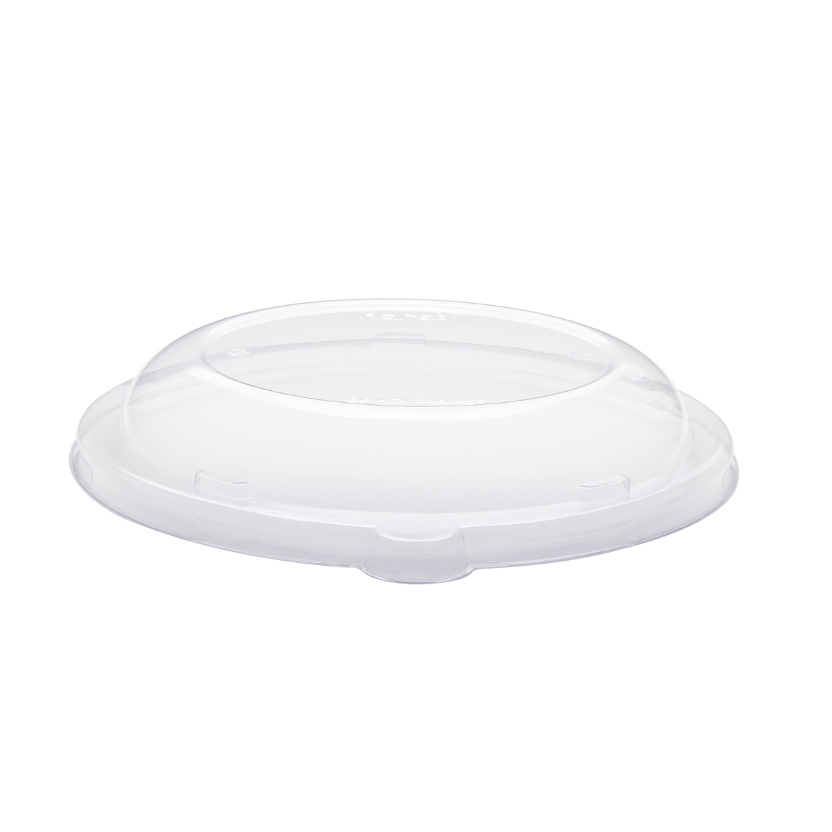 Karat PET Dome Lid for 24-40 oz. Bagasse Bowl, round plates.