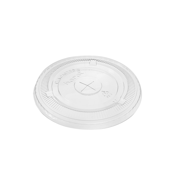 Karat 104.5mm PET Plastic Flat Lids are clear disposable cup lids that fit any plastic cup with a 104.5mm rim diameter.