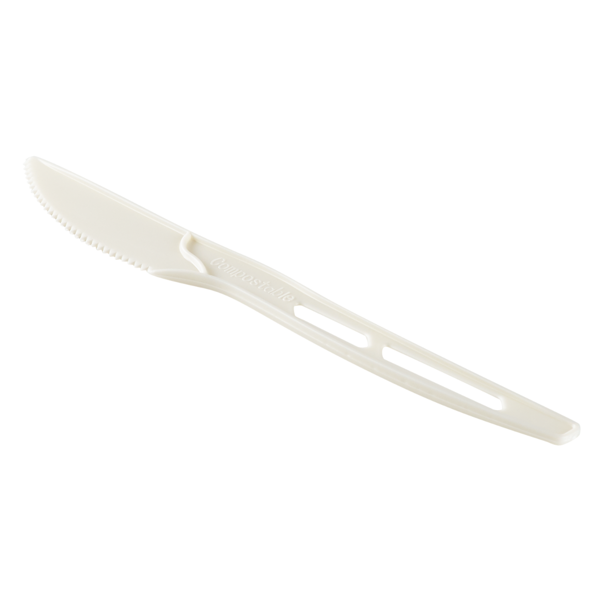The Karat Earth Heavy Weight CPLA Knife is stronger than PLA utensils and made from a compostable material. Your customers can enjoy a sizzling hot steak then simply toss the knife into a compost bin when finished. CPLA Knives allow you to provide quality utensils while reducing your impact on the environment. Make the switch to eco-friendly utensils today!